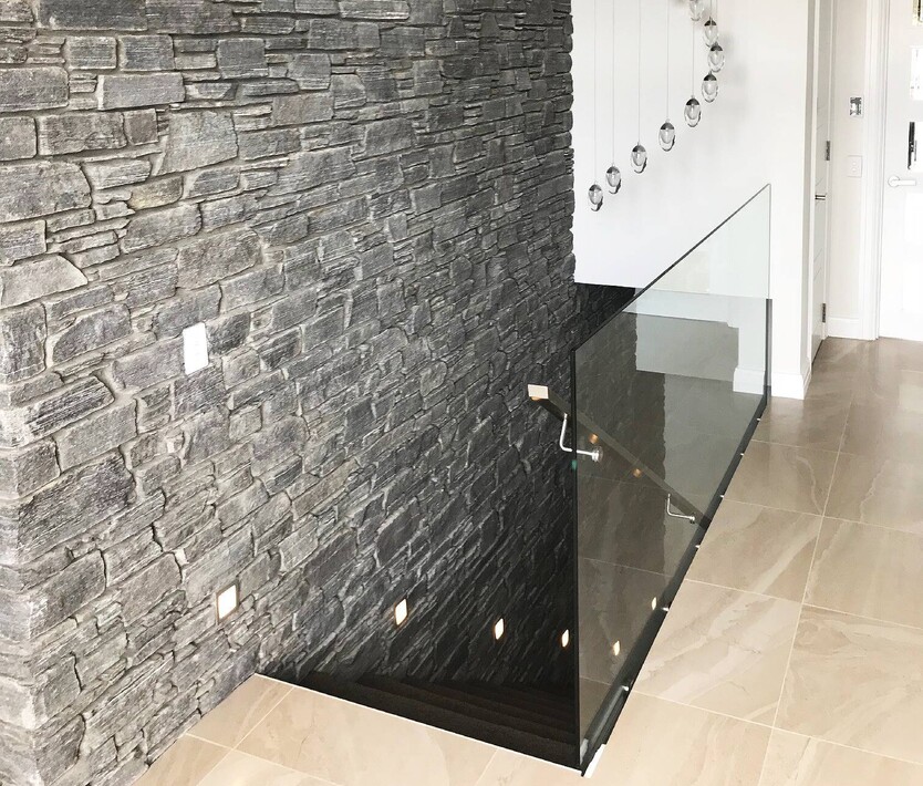 Cladding - schist, liner weatherboard (mixed colours), cedar with a mono pitch roof and floor to ceiling joinery to capture the surrounding view's.